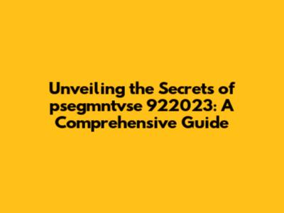 Unveiling The Secrets Of Psegmntvse 922023: A Comprehensive Guide