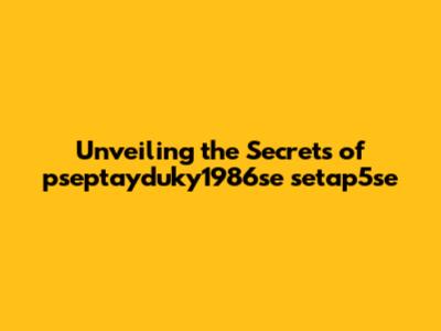 Unveiling The Secrets Of Pseptayduky1986se Setap5se