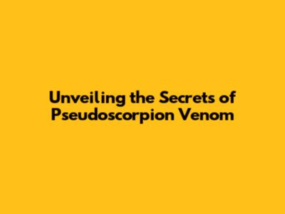 Unveiling The Secrets Of Pseudoscorpion Venom