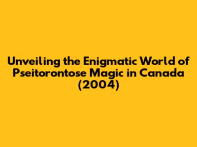 Unveiling The Secrets: Pseitorontose Magic In Canada (2004)