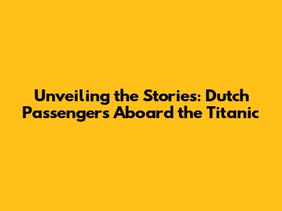 Unveiling The Stories: Dutch Passengers Aboard The Titanic