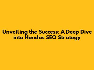 Unveiling The Success: A Deep Dive Into Honda's SEO Strategy