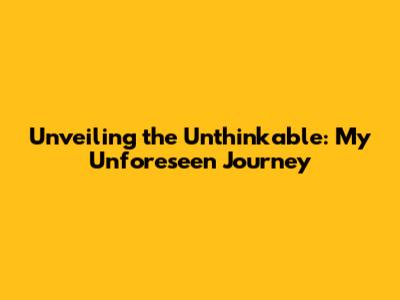 Unveiling The Unthinkable: My Unforeseen Journey
