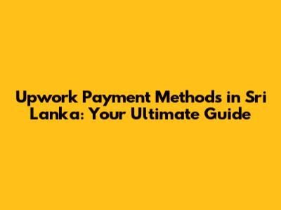 • What is the best payment method for Upwork in Sri Lanka? The