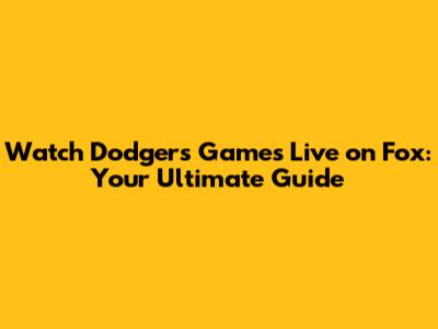 Watch Dodgers Games Live On Fox: A Fan's Guide