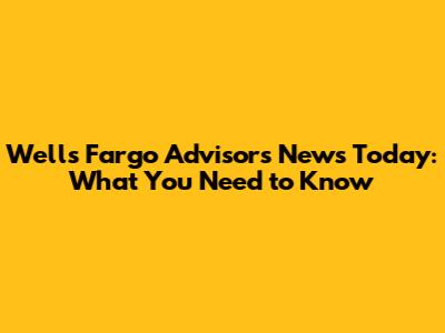 Wells Fargo Advisors News Today: What You Need To Know