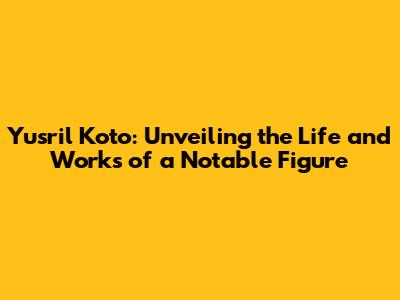 Yusril Koto: A Deep Dive Into His Life, Career, And Impact